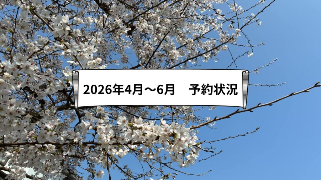 【お知らせ】2026年4月~6月 予約状況